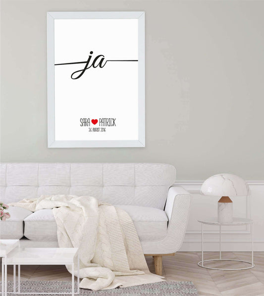 (Entwurf) Personalisiertes Bild “Ja” Hochzeit