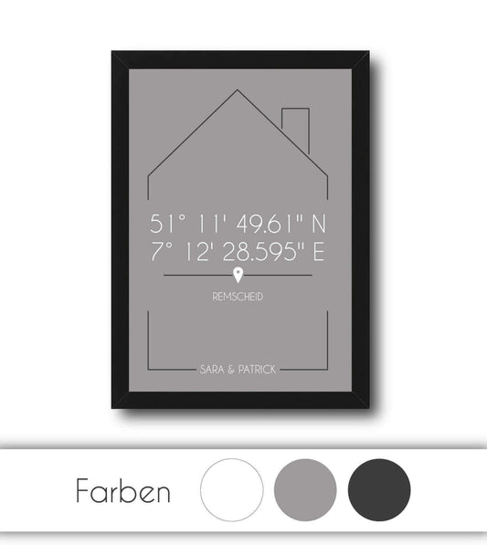 Personalisiertes Koordinaten Bild "Lieblingsplatz" - Haus