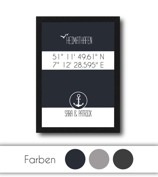(Entwurf) Personalisiertes Koordinaten Bild “HEIMATHAFEN” mit Anker